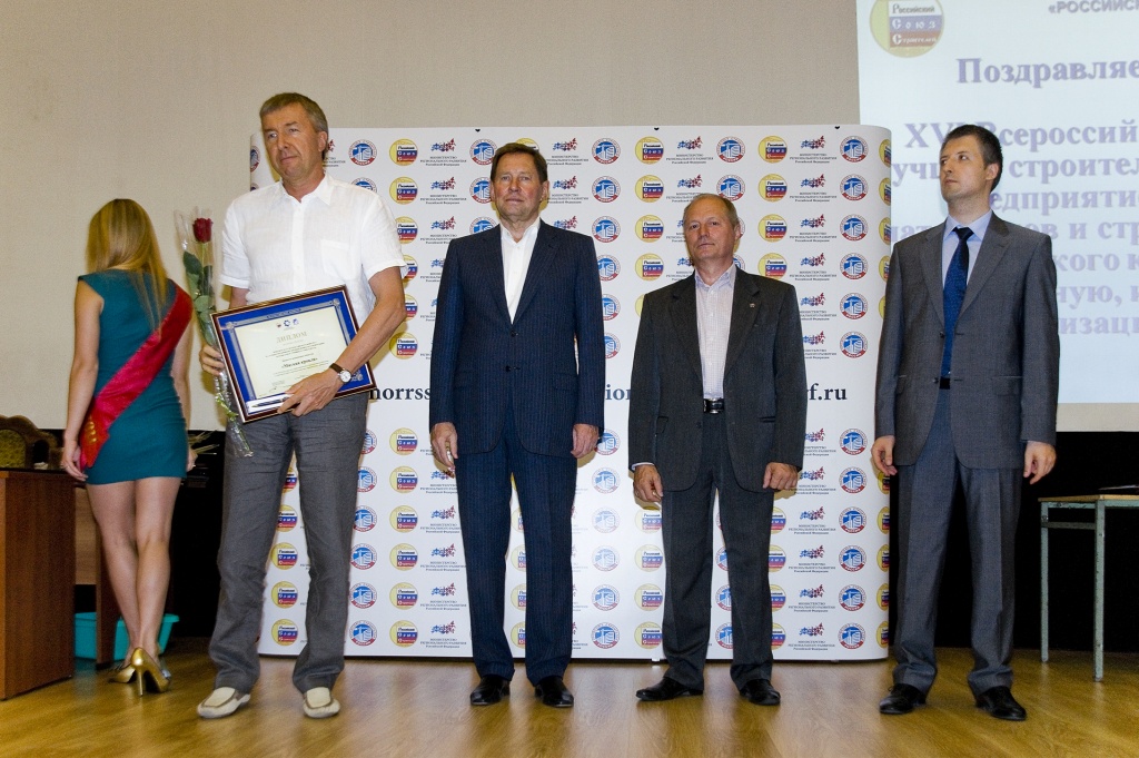 Диплом лауреата конкурса был вручён Президентом Российского Союза строителей Яковлевым В. А. в преддверии профессионально праздника - Дня строителя.