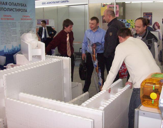 Подробно и обстоятельно мы рассказывали о теплоизоляции — новом строительном материале из пенополистирола — несъемной опалубке. Опалубку можно не только увидеть на нашем стенде, но и посмотреть, как блоки крепятся друг к другу, своими руками попробовать выстроить стену из опалубки и рассчитать сколько будет стоить 1 кв.м. чистой опалубки и опалубки с соответствующими приспособлениями для строительства — железной арматурой и бетоном.