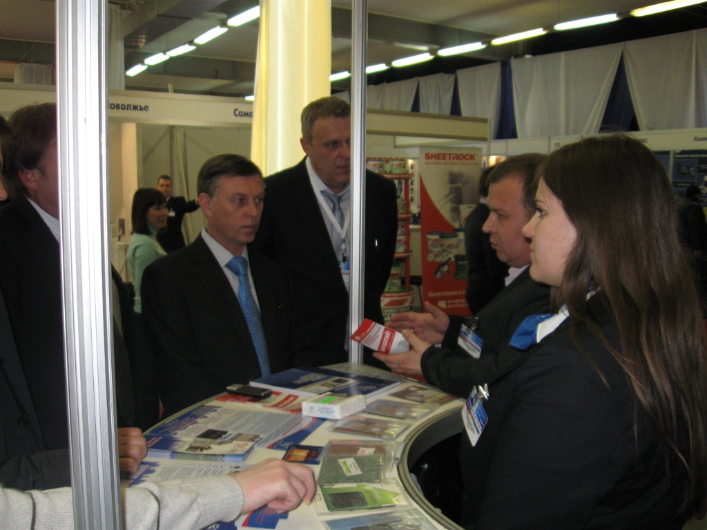На открытие выставки стенд завода «Мягкая кровля» осмотрел министр строительства Самарской области П. К. Донской.
