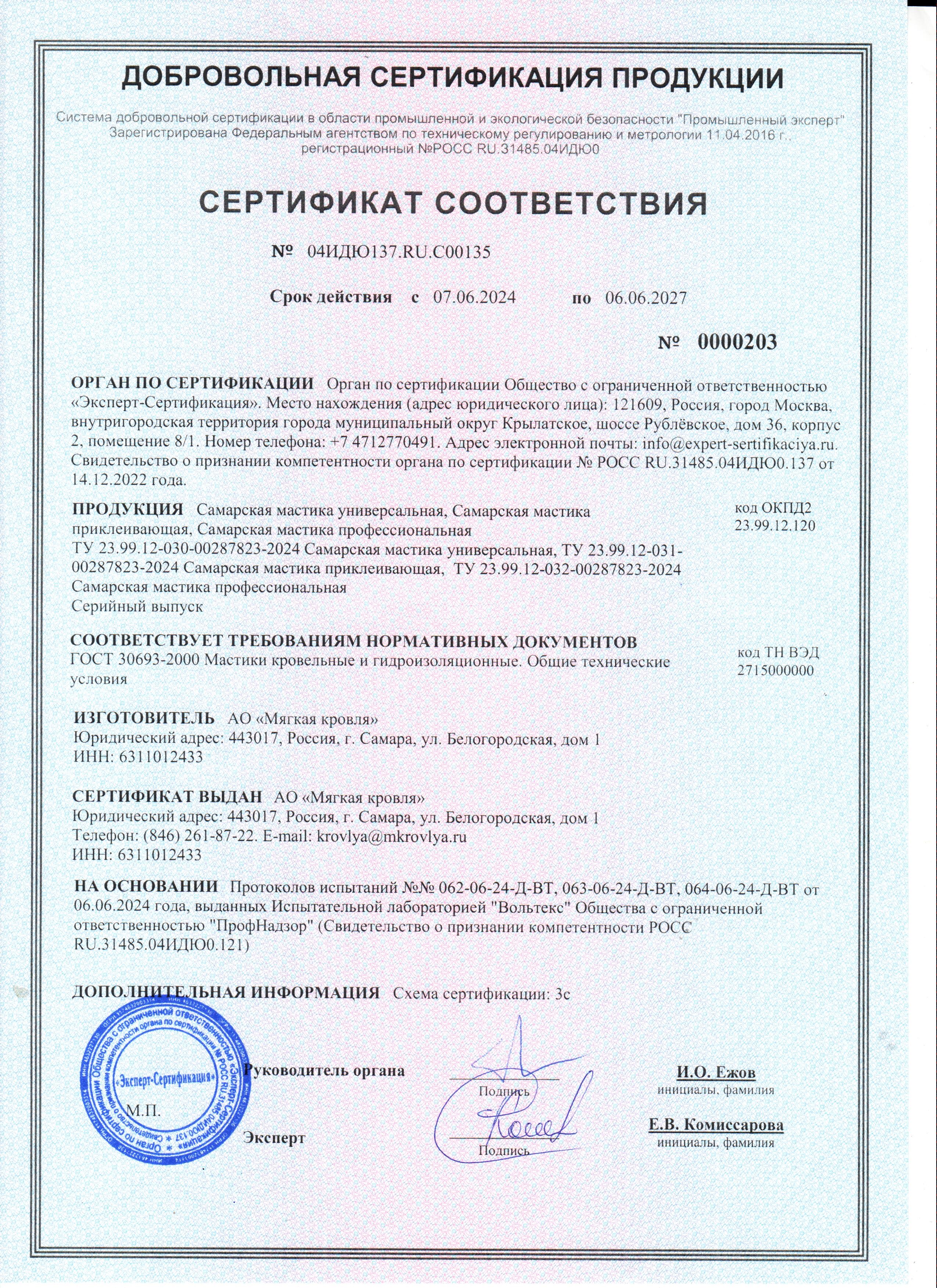 Производится по ТУ 23.99.12-034-00287823–2024 из нефтяного битума, модифицированного полимерами, минерального наполнителя и органического растворителя. Соответствует требованиям ГОСТ 30693-2000 «Мастики кровельные и гидроизоляционные. Общие технические условия».