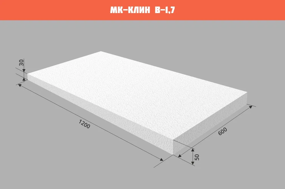 Уклонообразующие элементы изготавливаются из пенополистирола марки ППС 20 Р-А по ГОСТ 1588-2014 с прочностью на сжатие при 10% линейной деформации не менее 120 кПа. По сравнению с классическими способами разуклонки использование МК-КЛИН позволяет производить монтажные работы без применения «мокрых процессов» в устройстве кровли и облегчает нагрузку на перекрытия. Также существенно сокращает время выполнения работ.